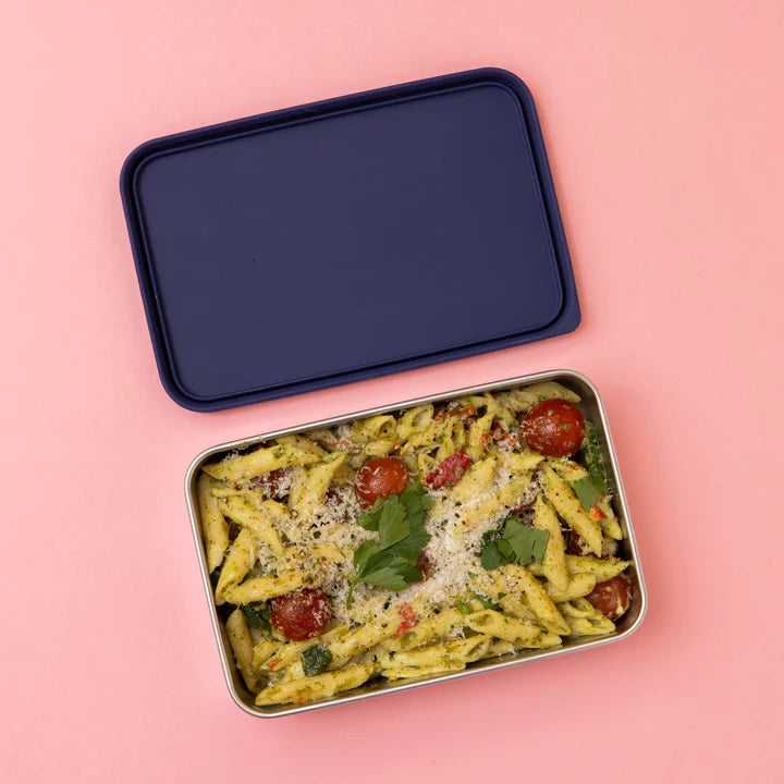 Built from tough, food-grade stainless steel with a leak-proof silicone lid, this box is dishwasher safe and ready for the rough and tumble of school lunches or busy workdays.