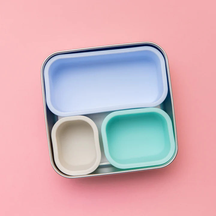 But this isn’t just a sandwich box. We’ve added three silicone cups to give you extra versatility. When you’re not packing sandwiches, the cups let you divide and conquer – think chicken goujons with a side of aioli, crackers with cheese cubes, or fruit and yoghurt. For toddler parents, this box doubles as the ultimate on-the-go snack kit. Toss it in your handbag and you’re ready for any snack attack, plastic-free.