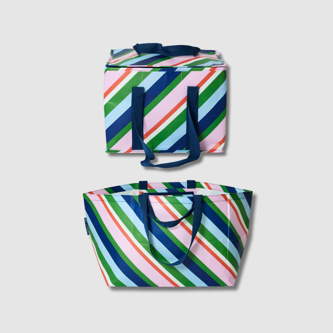 Ideal for beach trips, picnics, or road trips, this spacious Large Insulated Tote keeps drinks and snacks fresh for hours with ice packs. It’s big enough to fit a salad or lasagne flat, plus drinks and even fits a wine bottle upright.