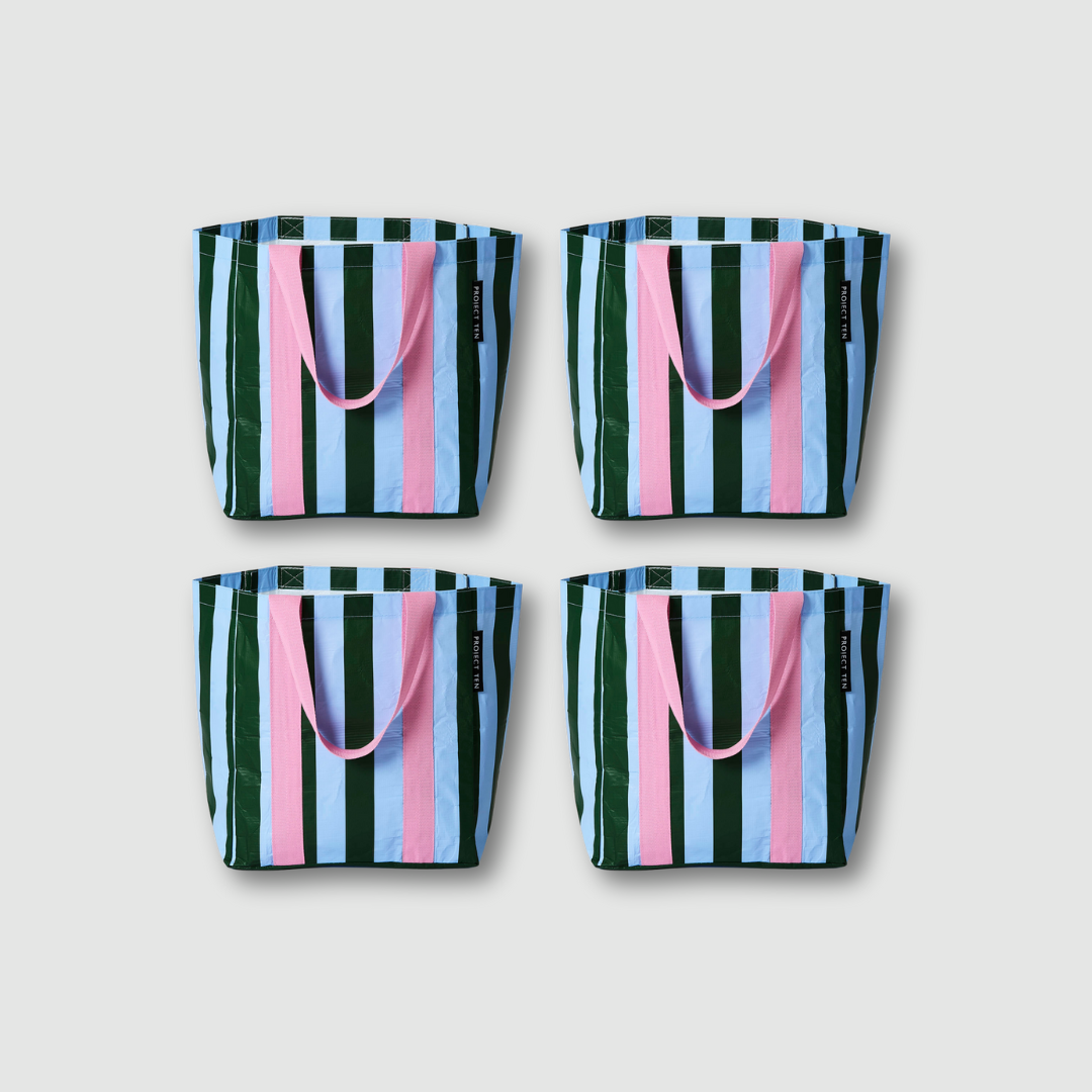 Shopper Tote Bundle (x4) – Green Blue Stripe