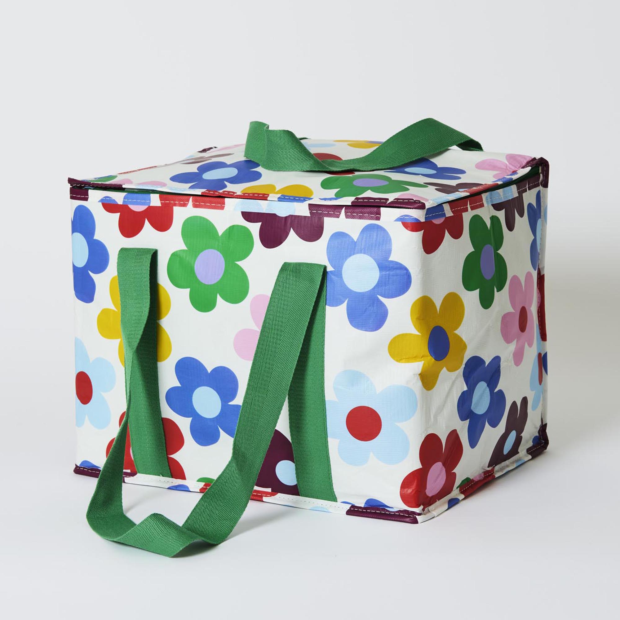 – Matte finish, sturdy woven RECYCLED plastic (RPET) with insulated lining.