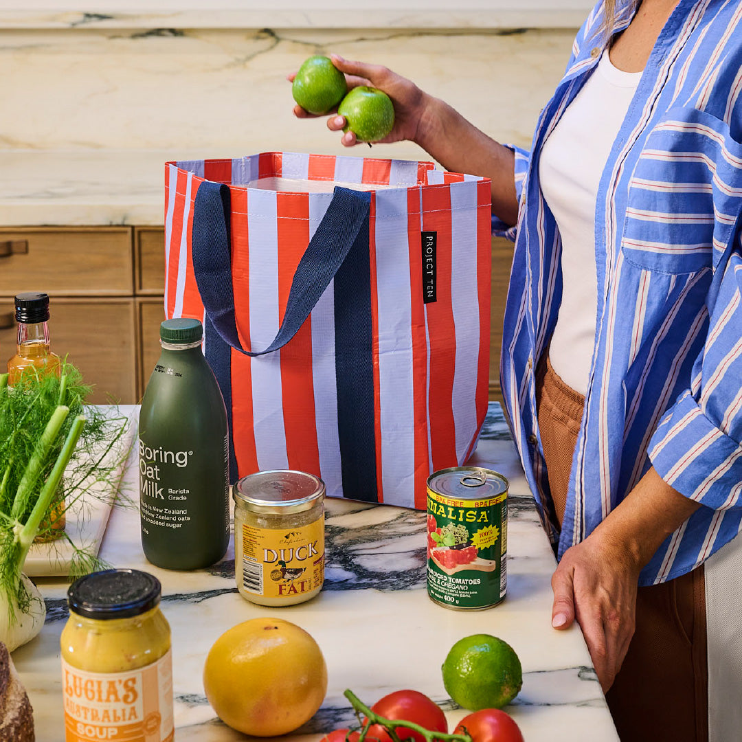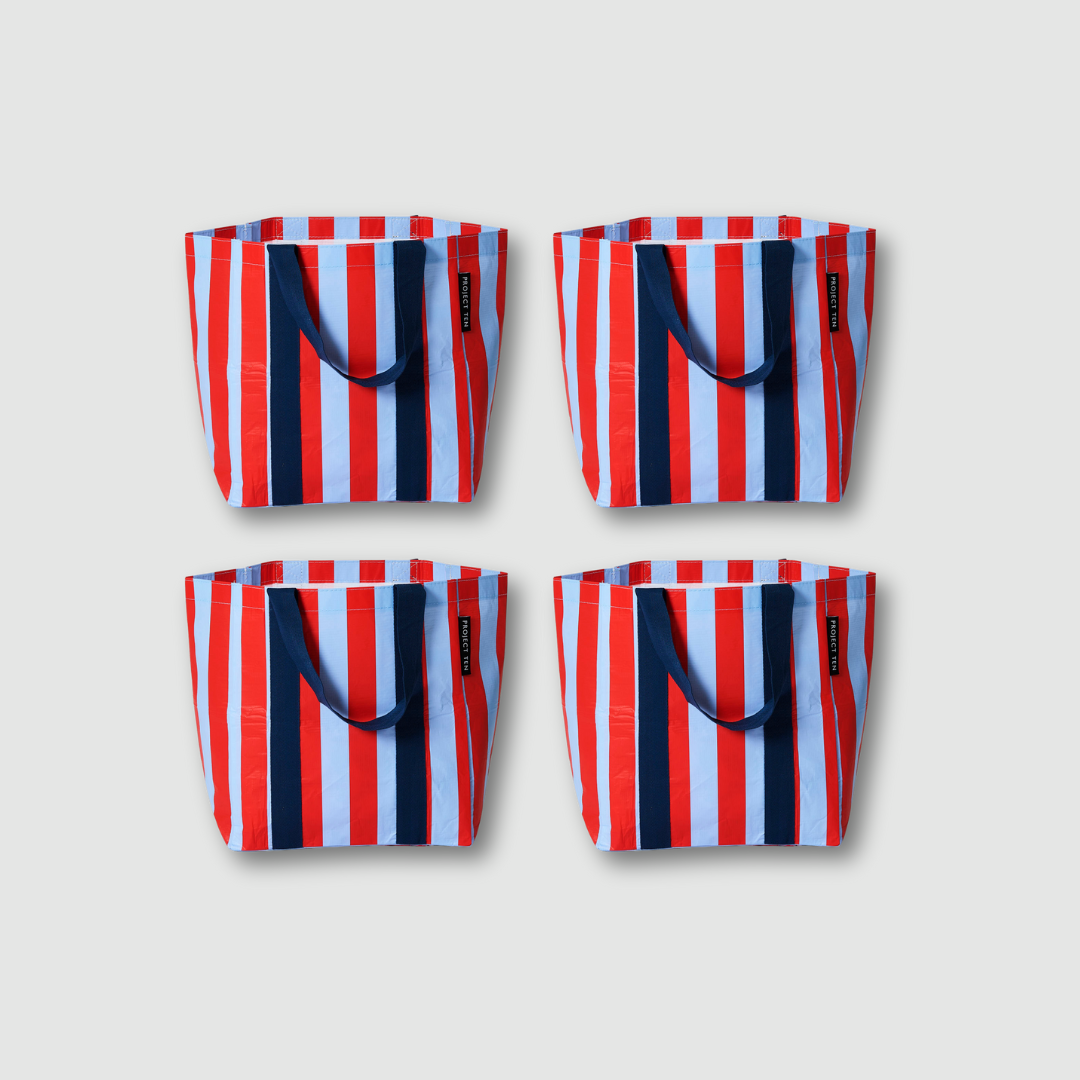 Shopper Tote Bundle (x4) – Red Blue Stripe