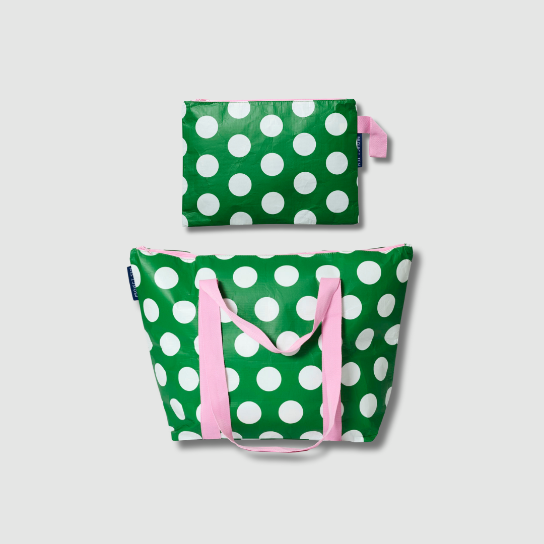 Large Zip Pouch + Zip Medium Tote Bundle – Polka Dot